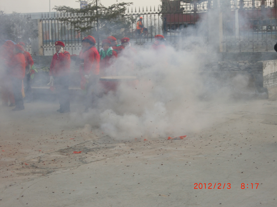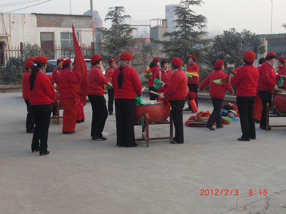2012年2月3日,鞏義市老年舞龍隊(duì)20多名英姿颯爽的婆婆們,穿著光鮮統(tǒng)一的表演服,熟練地打著鼓、舞著龍?jiān)谔┻_(dá)廠區(qū)和所有的泰達(dá)工作人員一起恭賀專業(yè)生產(chǎn)