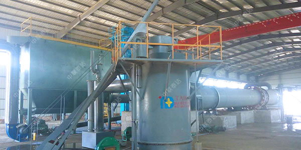 物料由皮帶輸送機(jī)或斗式提升機(jī)送到料斗,然后經(jīng)料斗的加料機(jī)通過(guò)加料管道進(jìn)入加料端。加料管道的斜度要大于物料的自然傾角,以便物料順利流入長(zhǎng)石烘干機(jī)內(nèi)。烘干機(jī)圓筒是一個(gè)與水平線略成傾斜的旋轉(zhuǎn)圓筒。物料從較高一端加入,載熱體由低端進(jìn)入,與物料成逆流接觸,也有載熱體和物料一起并流進(jìn)入筒體的。隨著圓筒的轉(zhuǎn)動(dòng)物料受重力作用運(yùn)行到較底的一端。濕物料在筒體內(nèi)向前移動(dòng)過(guò)程中,直接或間接得到了載熱體的給熱,使?jié)裎锪系靡愿稍?,然后在出料端?jīng)皮帶機(jī)或螺旋輸送機(jī)送出。在泰達(dá)長(zhǎng)石烘干機(jī)筒體內(nèi)壁上裝有抄板,它的作用是把物料抄起來(lái)又撒下,使物料與氣流的接觸表面增大,以提高干燥速率并促進(jìn)物料前進(jìn)。載熱體一般分為熱空氣、煙道氣等。載熱體經(jīng)干燥器以后,一般需要旋風(fēng)除塵器將氣體內(nèi)所帶物料捕集下來(lái)。如需進(jìn)一步減少尾氣含塵量,還應(yīng)經(jīng)過(guò)袋式除除塵器或濕法除塵器后再放排放。
