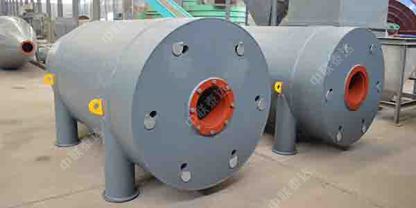 燃料通過(guò)燃燒機(jī)燃燒,形成火焰,熱風(fēng)爐內(nèi)火焰燃燒,同時(shí)通過(guò)控制系統(tǒng)調(diào)節(jié)混合一定比例的空氣,達(dá)到要求溫度的熱風(fēng)從排氣口通入對(duì)接的烘干機(jī)等需熱設(shè)備。