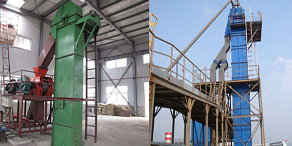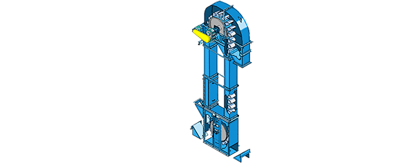 斗式提升機(jī)或斗式輸送機(jī)由運(yùn)行部分(料斗與牽引膠帶),帶有傳動(dòng)滾筒的上部區(qū)段,帶有拉緊滾筒的下部區(qū)段,中間機(jī)殼,驅(qū)動(dòng)裝置,逆止制動(dòng)裝置等組成,適用于向上輸送松散密度ρ<1.5t/m3粉狀、粒狀和小塊狀的無(wú)磨琢性和半磨琢性散狀物料,如煤、砂、焦末、水泥、碎礦石等。